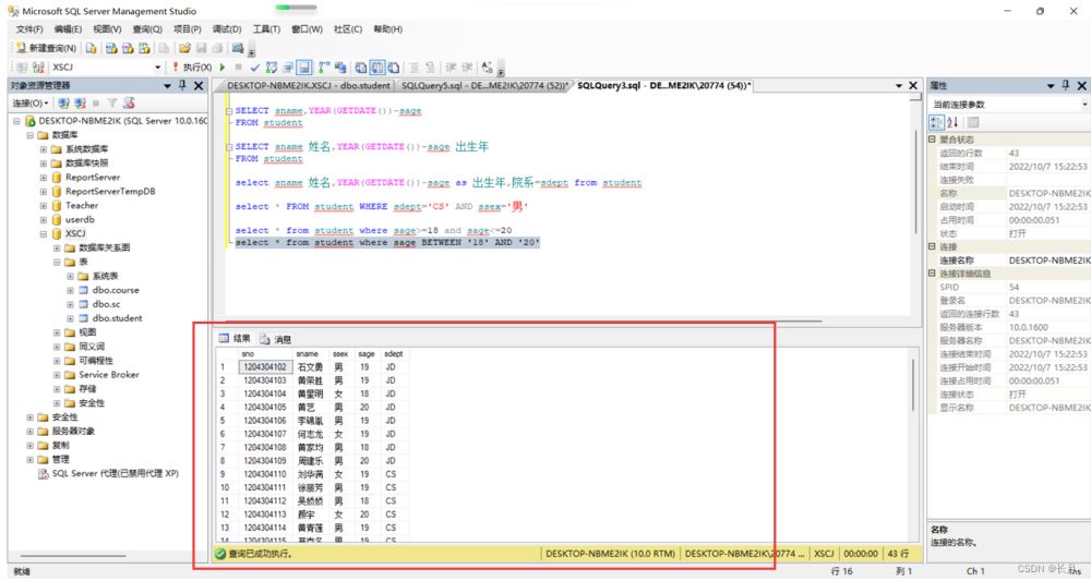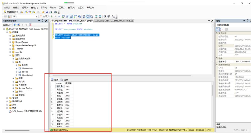 SELECT sname,YEAR(GETDATE())-sageFROM student