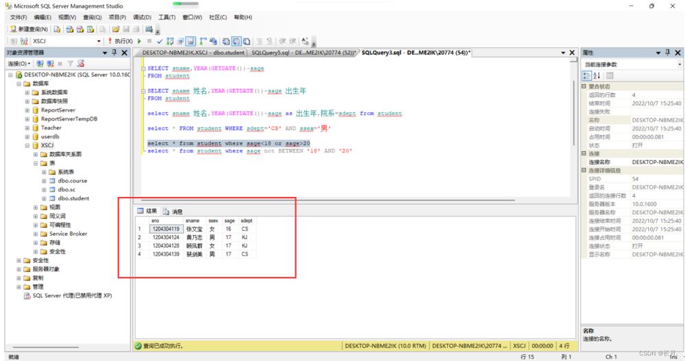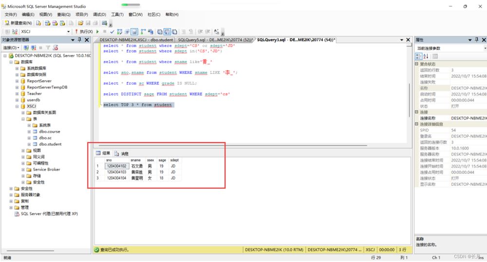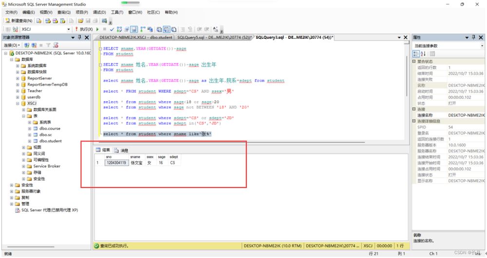 到此這篇關于SQL Server單表數據查詢的文章就介紹到這了,更多相關SQLServer單表數據查詢內容請搜索以前的文章或繼續瀏覽下面的相關文章希望大家以后多多支持!