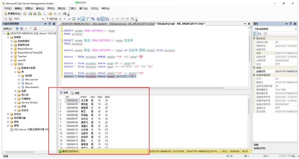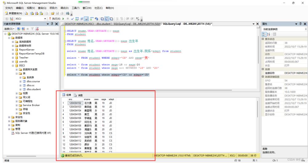- 9.查詢所在系為CS和JD的學生信息