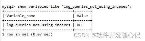 查詢未使用索引是否開啟記錄慢查詢?nèi)罩荆?show variables like ‘log_queries_not_using_indexes’;