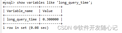 如下圖所示,設(shè)置的慢查詢時間為0.3秒