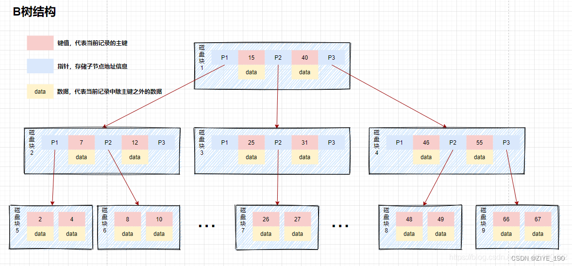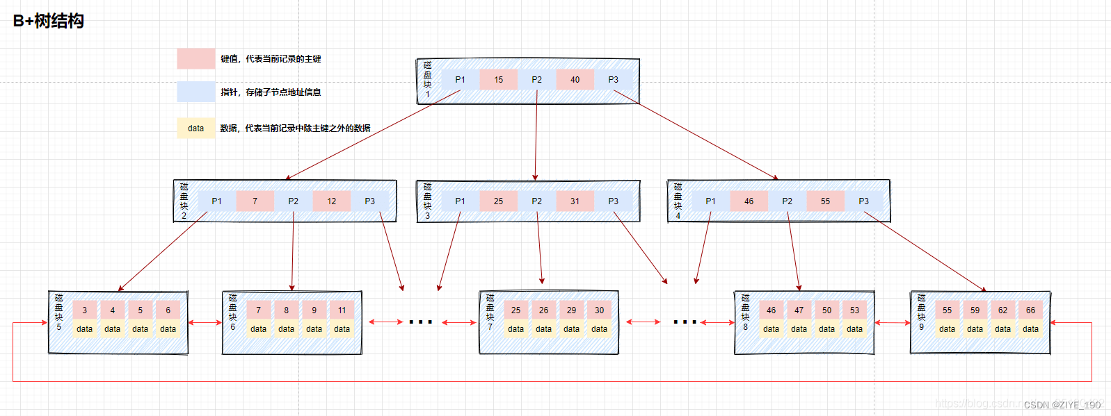 葉子節點的指向:B+樹相鄰的葉子節點通過指針相連,B樹沒有