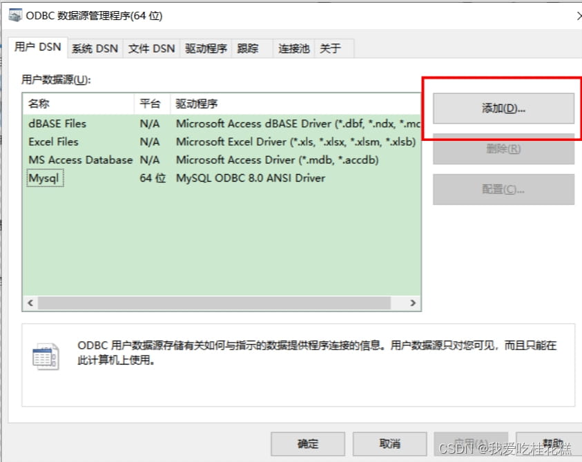 (5)點擊添加按鈕添加用戶DSN.