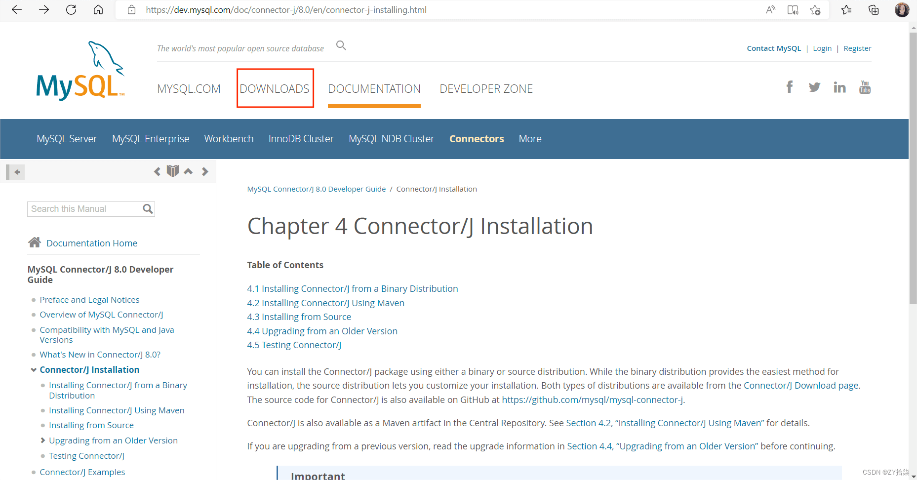 選擇connector/J(不要管workbench,這個是數據庫的圖形可視化頁面)