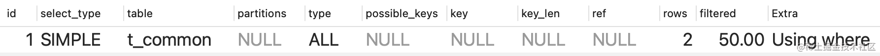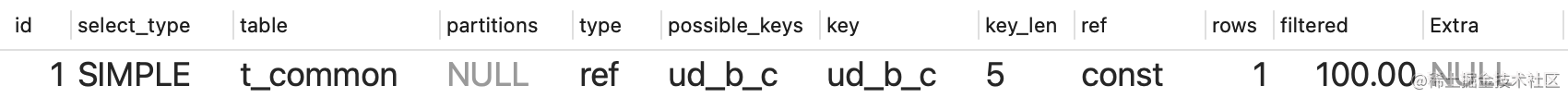 select a,b,c from t_common where c=1;