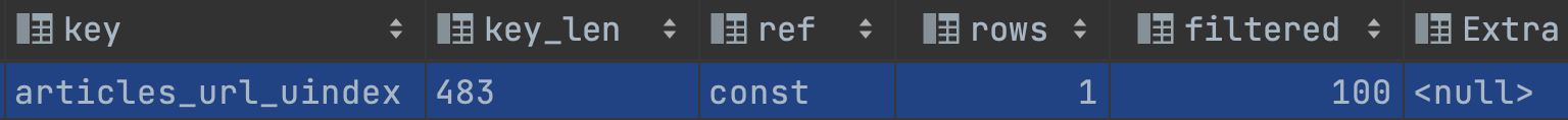 explain select * from articles where url="csdn.com"