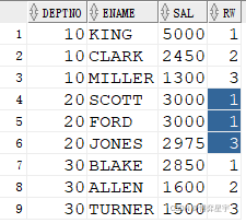 3. row_number()值相同時排名不相等,其后排名連續不跳躍