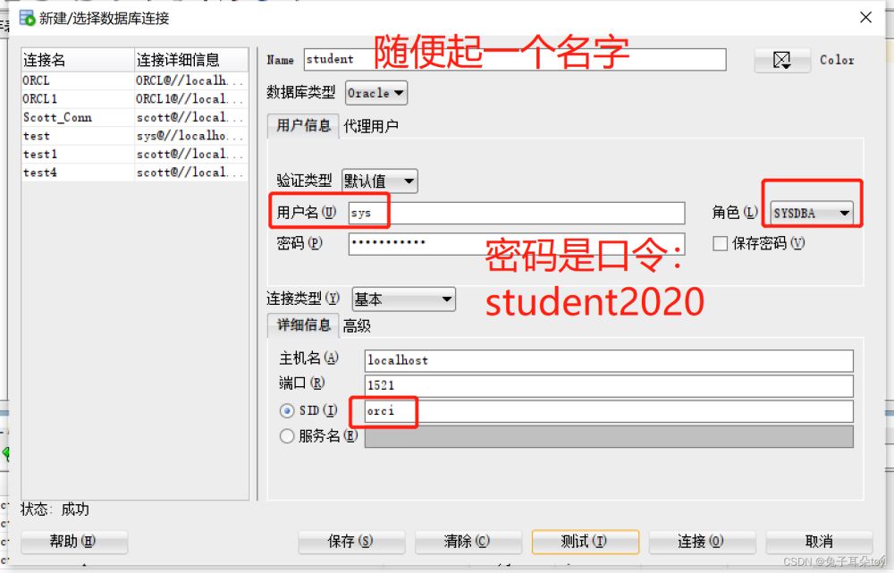(注:我上面的SID設(shè)的是orcw,但是后來我又弄了一個(gè)是orci,所以這里連接的時(shí)候SID我填的是orci)