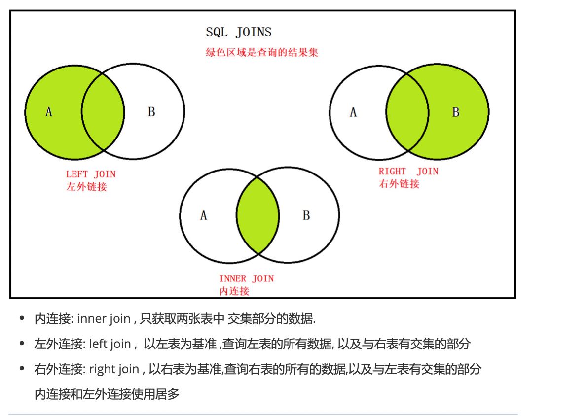 1、內連接**特點:**通過指定的條件去匹配兩張表中的數據,匹配上就顯示,匹配不上就不顯示。