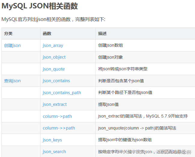 MySQL5.7以上支持JSON的操作,以及增加了JSON存儲類型