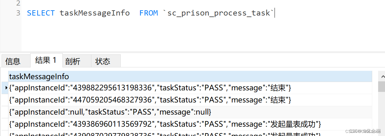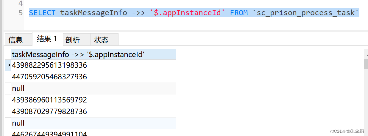 2.結果字段為json串