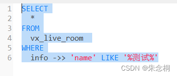 **注意:**like 查詢varchar類型時要將單箭頭變為雙箭頭直接匹配值模糊查詢 ->>