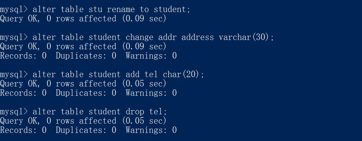 alter table 表名 rename to 新的表名;增加一列: