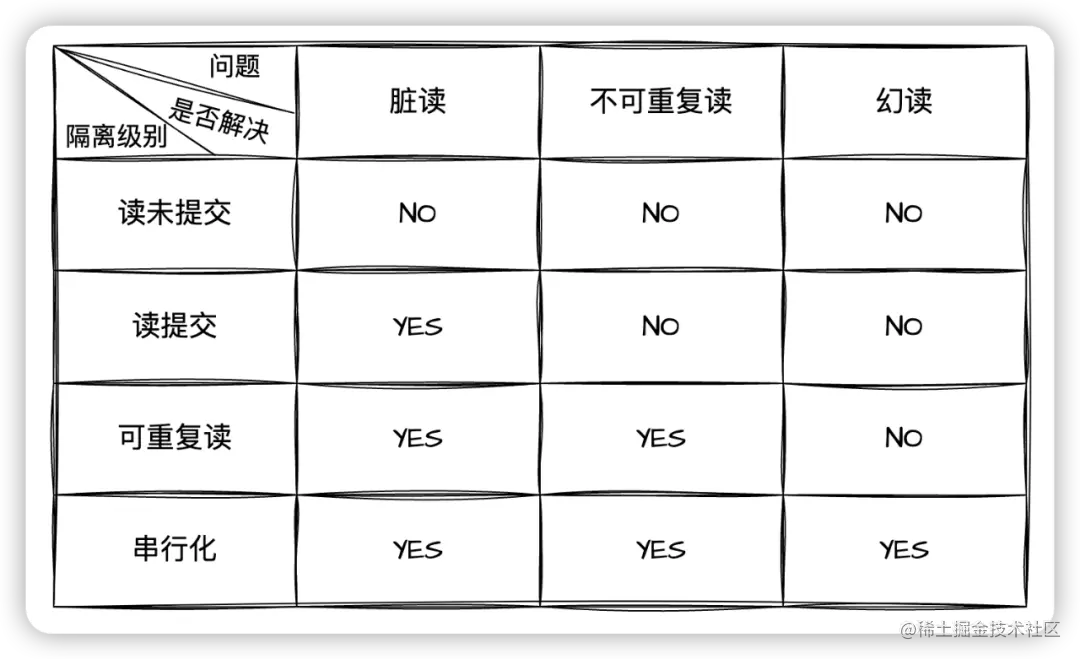 只有串行化的隔離級別解決了全部這 3 個問題,其他的 3 個隔離級別都有一定的缺陷。
