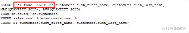 1)只寫(xiě)PARALLEL(sales8)則customers部分沒(méi)有并行,從而影響整體并行效率。