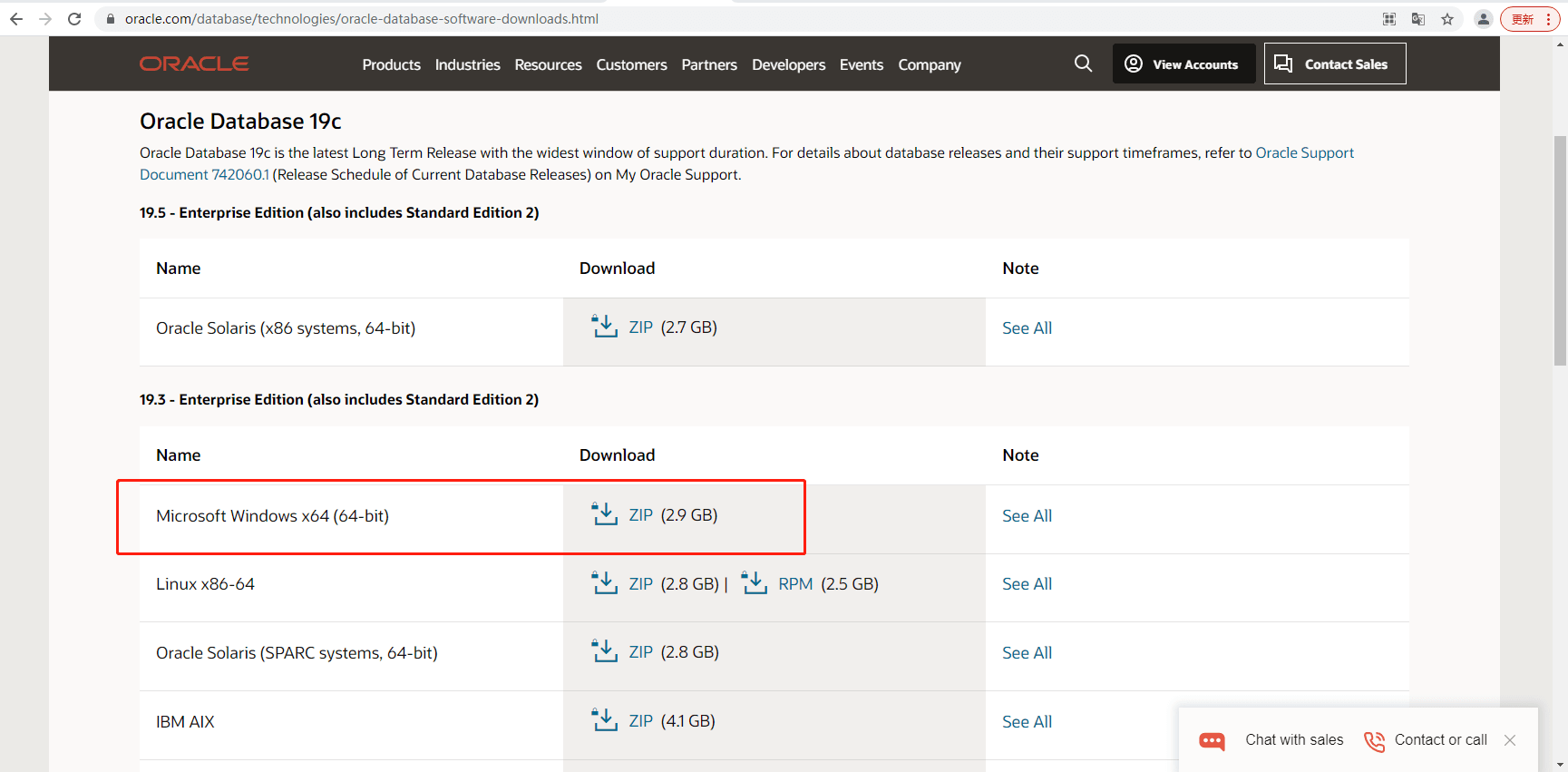 1. 數據庫搭建安裝 oracle 數據庫,進入官方下載,這里安裝選著的是官方 19C 的版本