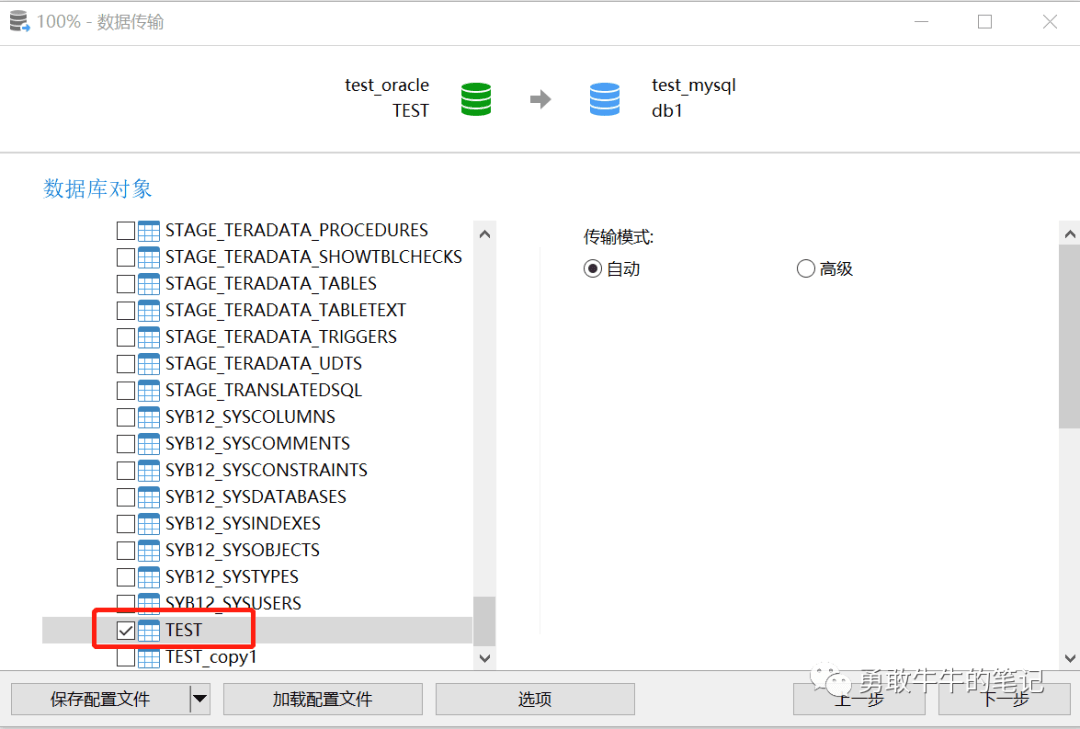 下一步選擇要同步的表TEST,也可以選擇同步全部表