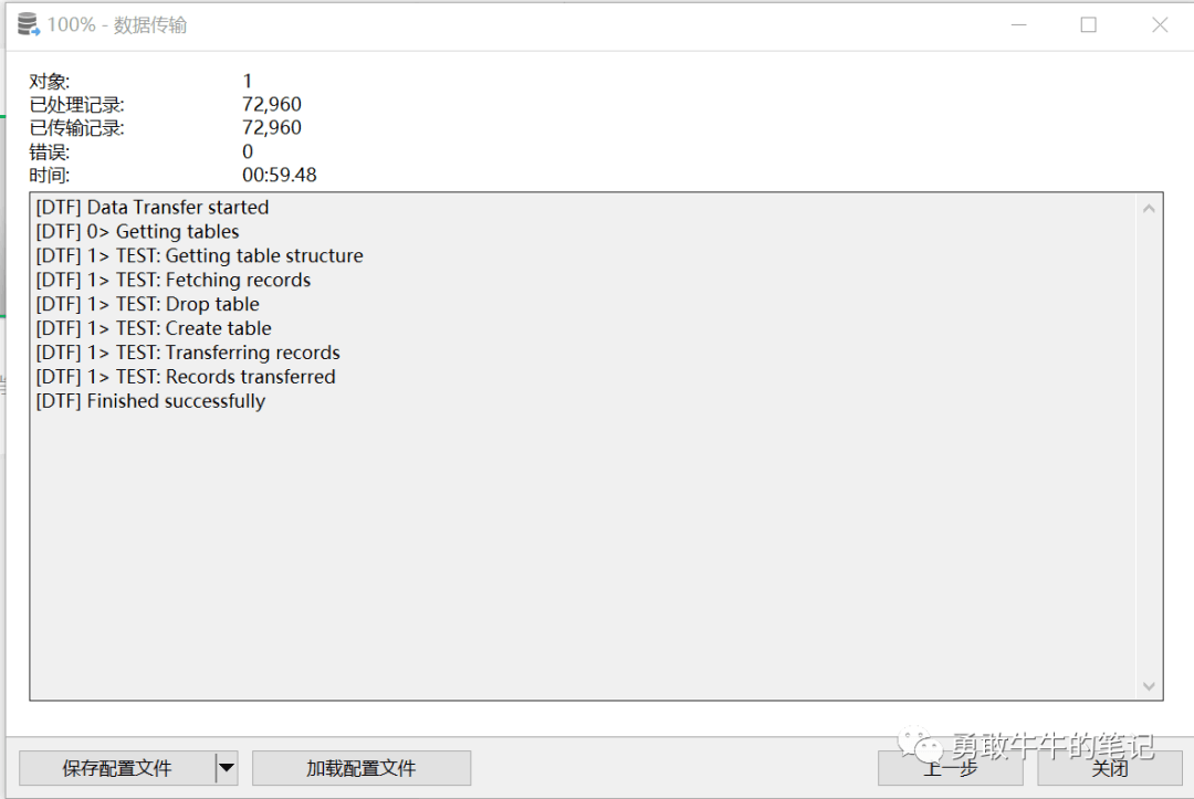 傳輸同步完成,整個同步的效率還是較慢的,7.2W的數(shù)據(jù),用了1分鐘。