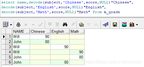 2 使用decode函數(shù)對(duì)表做行列轉(zhuǎn)換