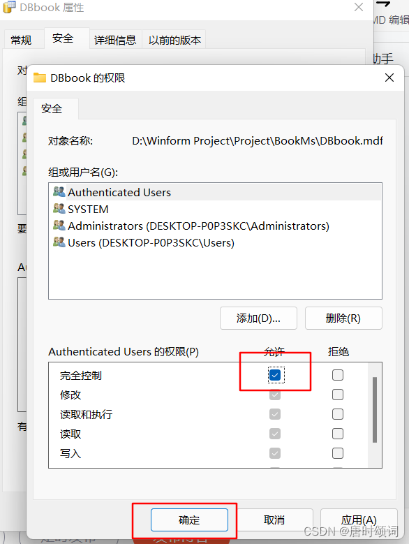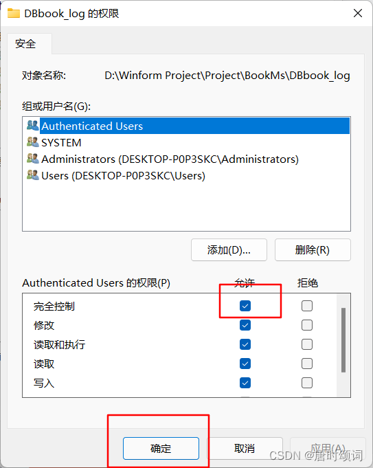 4. 完全控制,打√,點擊確定