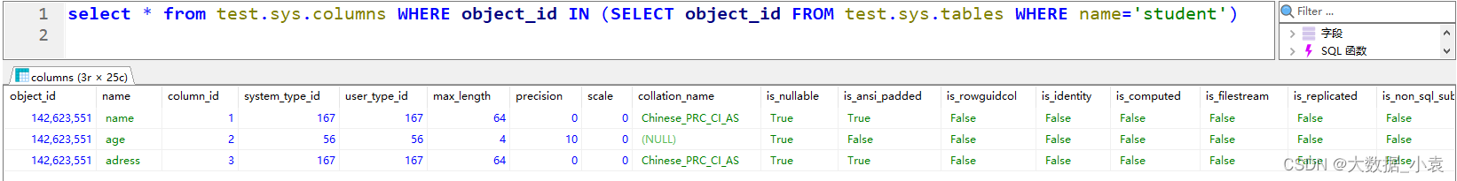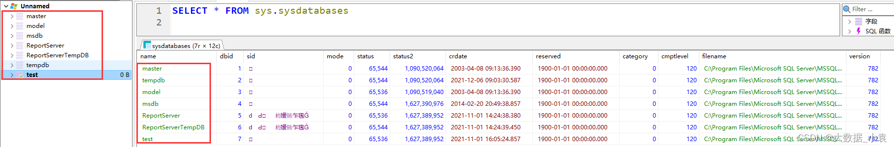 目錄SQL查詢服務器下所有數據庫及數據庫的全部表獲取所有用戶名獲取所有用戶數據庫獲取庫中所有的表名獲取某個表的字段名補充:SqlServer中查詢某數據庫所有表及其數據總條數和占用空間1.查詢某數據庫中的所有數據表2.查詢某數據庫中的所有數據表及其數據總條數3.查詢某數據庫中的所有數據表及其數據總條數所占用的空間大小SQL查詢服務器下所有數據庫及數據庫的全部表獲取所有用戶名SELECT * FROM sys.sysusers獲取所有用戶數據庫SELECT * FROM sys.sysdatabases