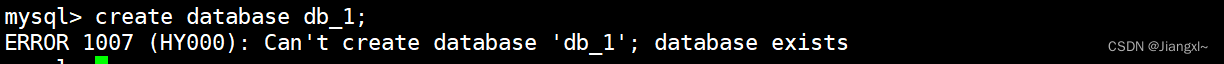 當我們創(chuàng)建數(shù)據(jù)庫時,如果數(shù)據(jù)庫已經(jīng)存在,那么創(chuàng)建時就會報錯,如下圖所示: