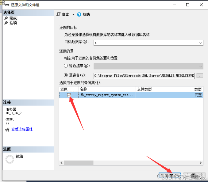 - 2.然后可以通過該備份文件還原數據庫。