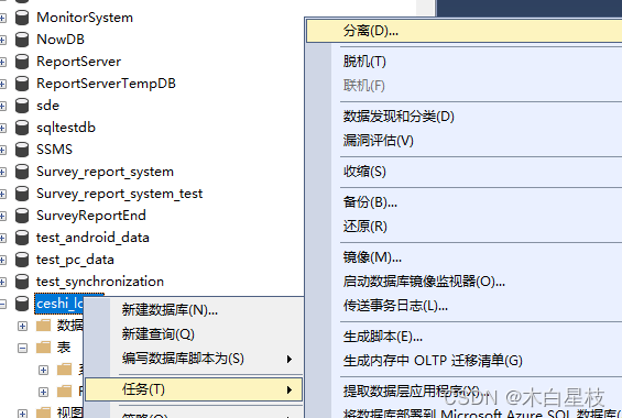 - 2.右鍵數據庫點擊任務,分離。