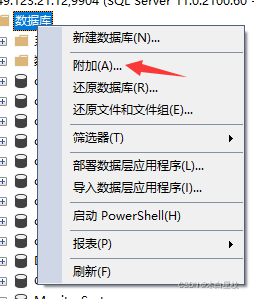 這時候我們點擊數據庫進行附加。