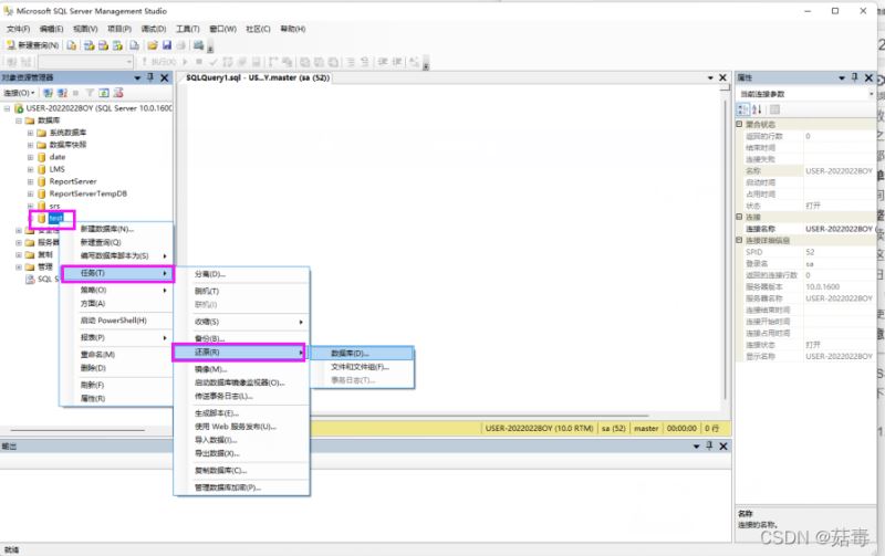 用 SSMS 對象管理資源管理器恢復數據庫,操作步驟如下: