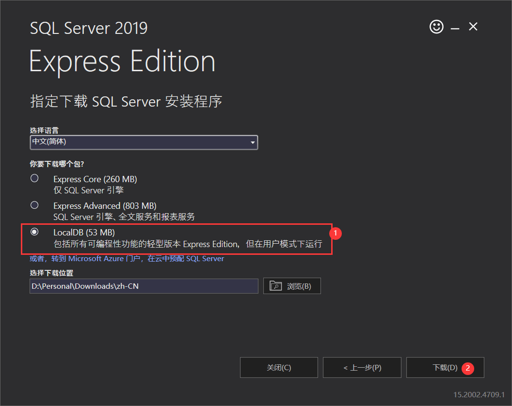 (SQL Server Express入口:https://www.microsoft.com/zh-cn/sql-server/sql-server-downloads)