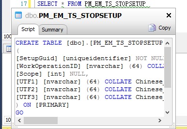(1) 在查詢分析器中寫DML語句時,當鼠標移動到數據庫對象時,插件會自動給出提示,點擊提示標簽,會顯示數據庫對象創建的腳本;