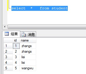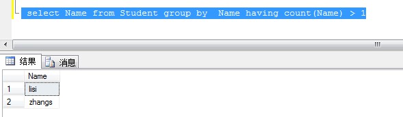 create table Student(ID varchar(10) not null,Name varchar(10) not null,);insert into Student values("1", "zhangs");insert into Student values("2", "zhangs");insert into Student values("3", "lisi");insert into Student values("4", "lisi");insert into Student values("5", "wangwu");
