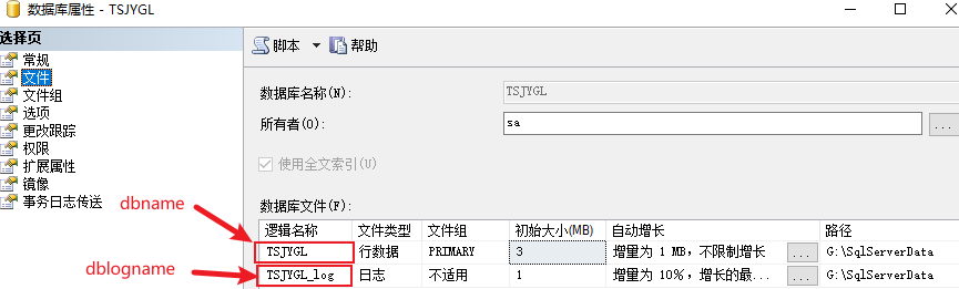 壓縮日志腳本里要填的名字從要壓縮的數據庫屬性里查看