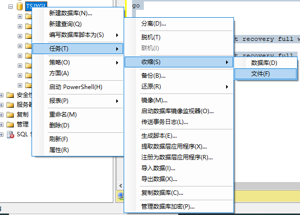 (大致等個一分鐘左右),腳本執行完,選擇數據庫,選擇任務-》收縮-》文件