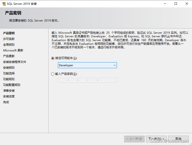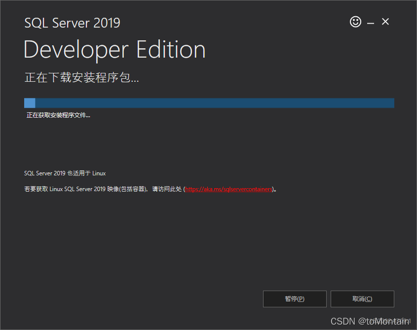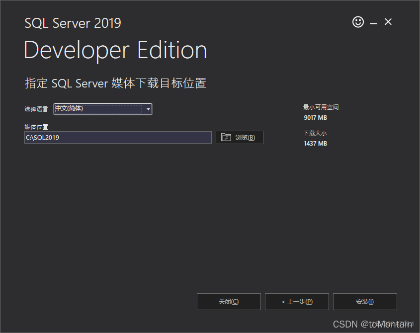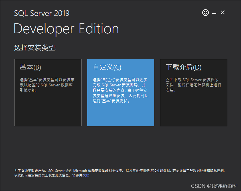1、官網(wǎng)下載SQL Server 2019 Developer: Developer下載地址 或者點(diǎn)擊這里下載