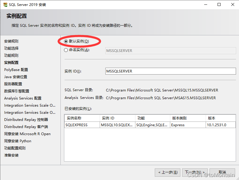 選擇默認(rèn)實(shí)例即可(如要命名,不可重復(fù)):