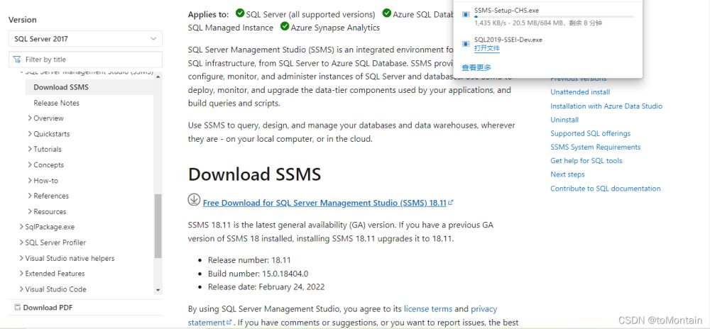 然后官網(wǎng)下載SQL Server Management Studio:鏈接地址