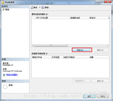 ****2.****在“附加數據庫”界面,添加mdf文件即可,點擊“確定”。