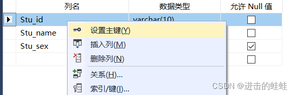 b.選擇屬性Stu_id,右擊,選擇設(shè)置主鍵