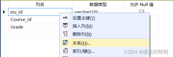 b.選擇屬性Stu_id,右擊,選擇<關(guān)系>