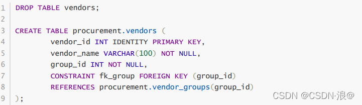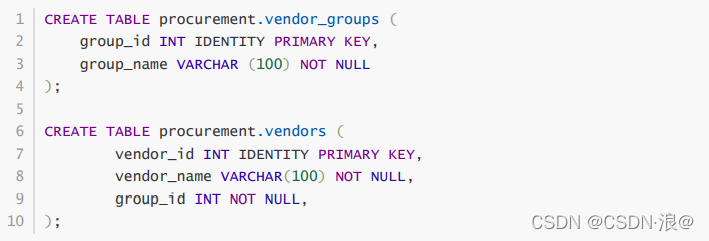 接下來就是外鍵約束:SQL Server外鍵約束簡介外鍵是一個表中的一列或一組列,它唯一地標(biāo)識另一個表的行。 vendor_groups 和vendor表,它們的結(jié)構(gòu)(如圖所示):