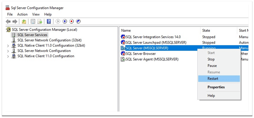 修改服務(wù)參數(shù),需要重啟SQL SERVER服務(wù)才能生效。