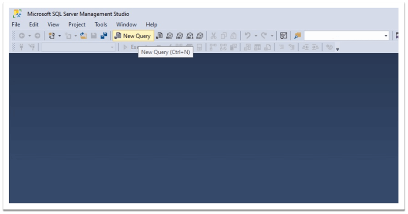 為避免多個(gè)連接,我們將打開(kāi)“SQL Server Management Studio”,但不連接到服務(wù)器。換句話說(shuō),我們將關(guān)閉“連接到服務(wù)器”窗口,同時(shí)關(guān)閉“對(duì)象資源管理器”。然后我們將點(diǎn)擊“新建查詢”。