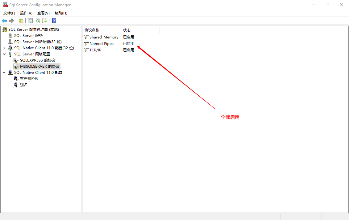 打開sql server 配置管理器