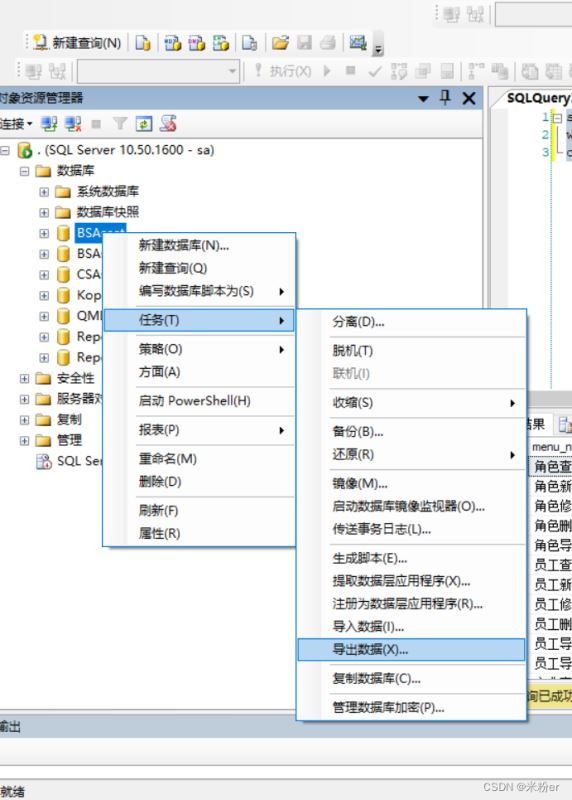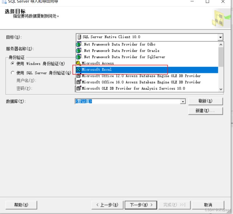 將查詢的兩列數據導出到excel中 1.選擇數據庫,右鍵任務→導出數據,打開導入導出向導,單擊下一步
