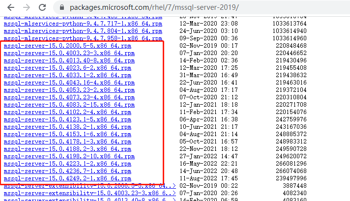 下載地址:https://packages.microsoft.com/rhel/7/mssql-server-2019/