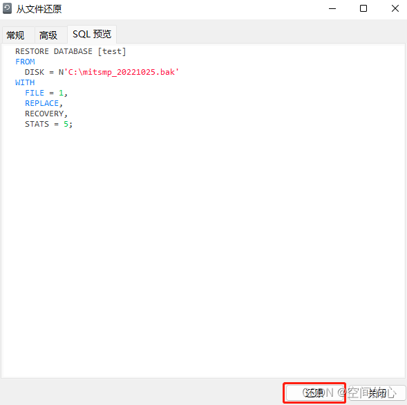 RESTORE DATABASE [test] --為待還原庫(kù)名