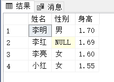 insert into 學(xué)生表01values("李明","男","1.70")將上述語句執(zhí)行后,使用select語句即可看到結(jié)果