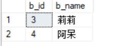 insert into b1(b_name) values("莉莉") insert into b1(b_name) values("阿呆")插入結(jié)果: